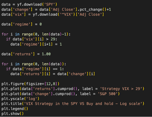 In conclusion, today we showed you two strategies involving the VIX. The results? Holding SPY when the VIX is below a certain value did not prove as profitable as holding the SPY when the VIX was above a certain value.