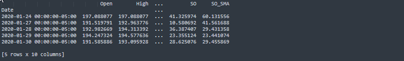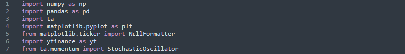 In the previous image, we import StochasticOscillator from ta.momentum that computes the Stochastic Oscillator.