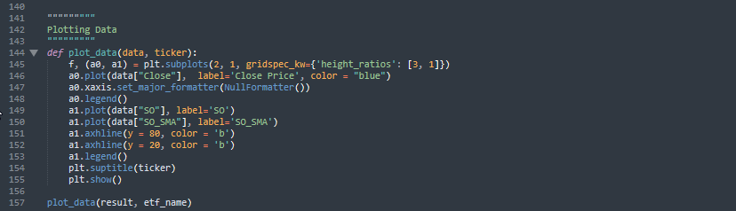 The plot_data function takes two arguments data and ticker; in the example, we pass result and etf_name to the function and get: