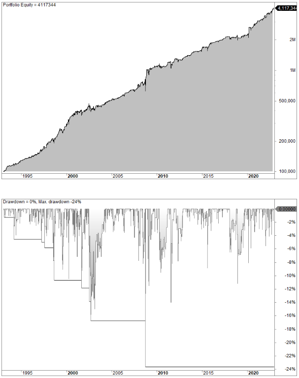 Below you will find the equity curve and the monthly and annual returns (of the backtest):