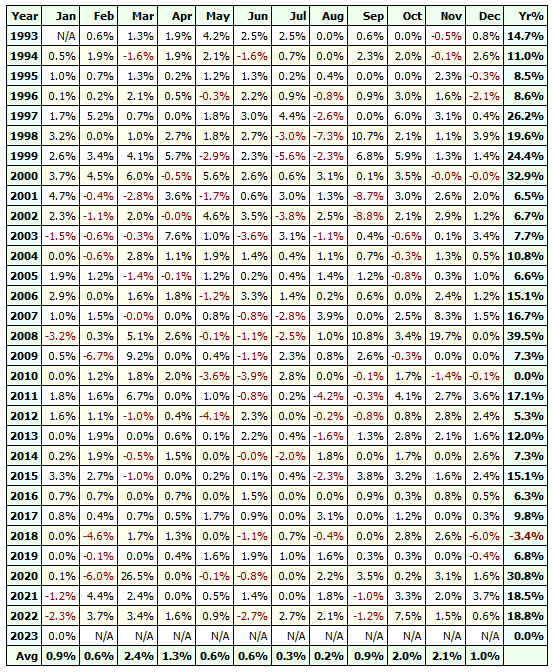 Performance in 2023 was pretty good: +18%, while SPY dropped 19.5%.