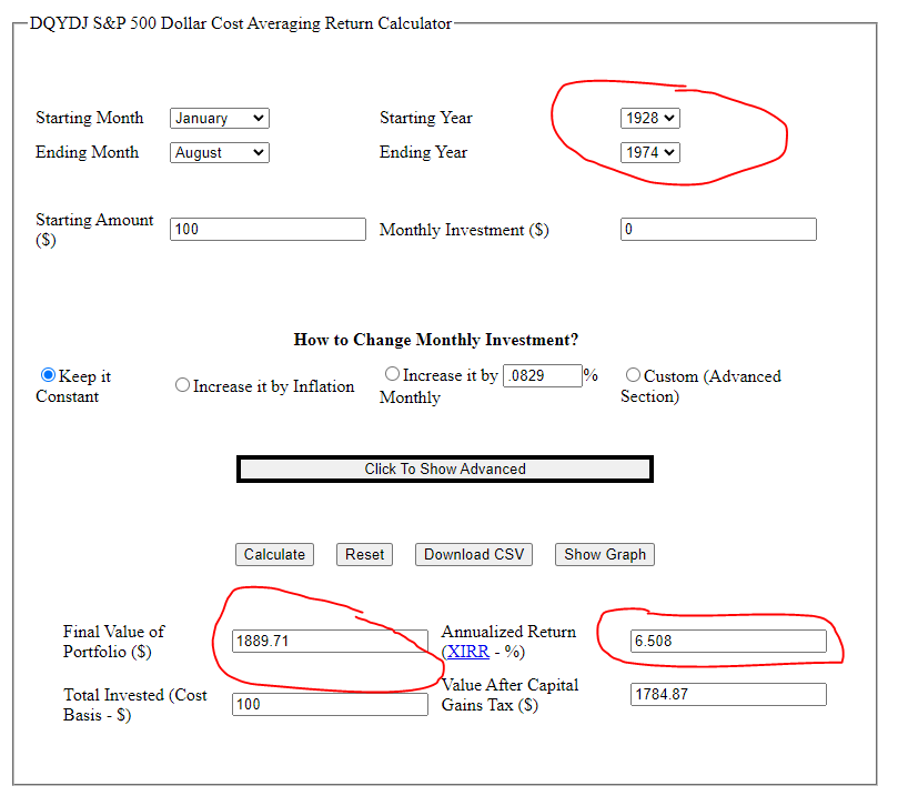 What would happen if you only held your investment until 1974 and withdrew your money in the middle of a bear market?