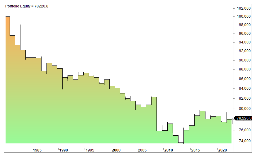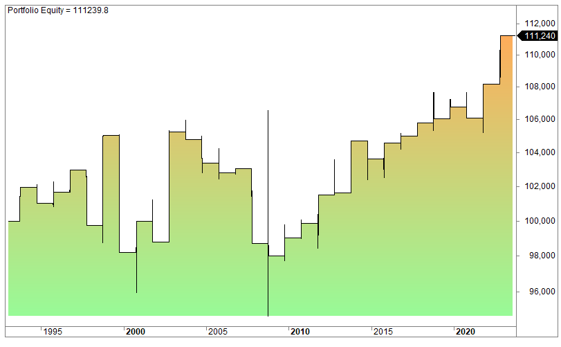Let’s backtest by being invested from the open of Monday OPEX week and exit at the close of Friday: