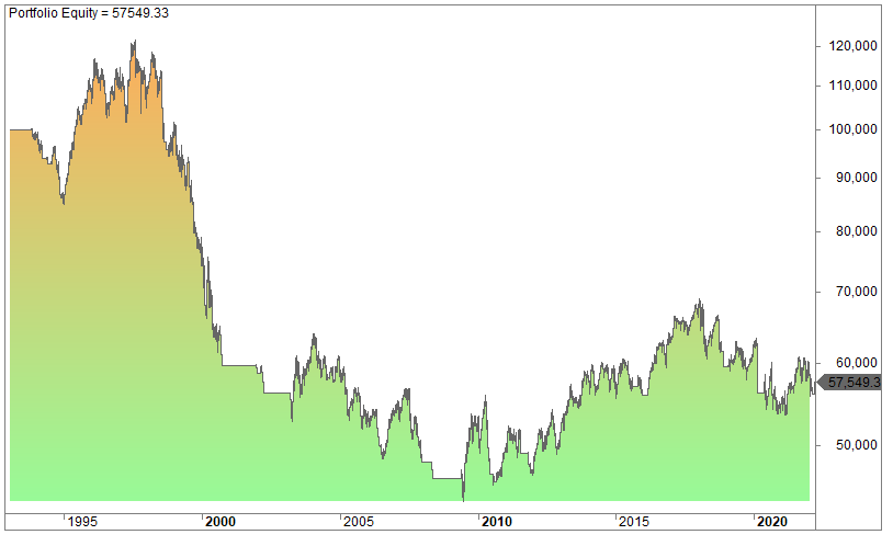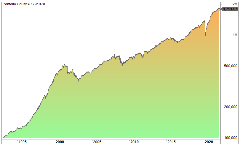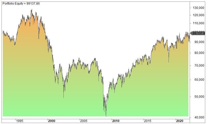 This is the equity curve since 1993 if you bought every close and sold at the open the next day: