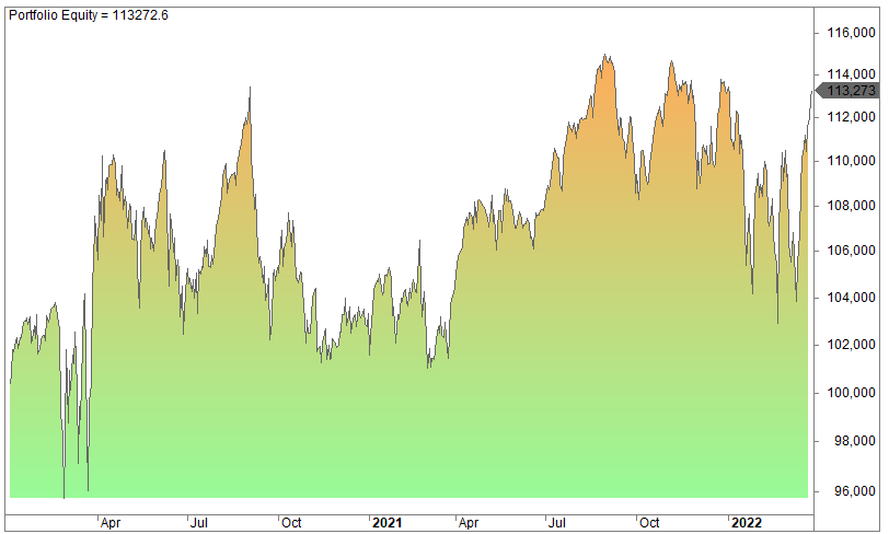If we put in a trend filter, for example a requirement that the close must be above the 200-day moving average, it performs slightly better.