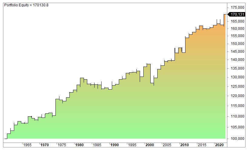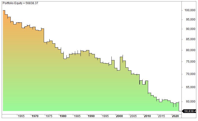 The average gain (if you are short) is 0.87% since 1960, and the win rate is 67%.