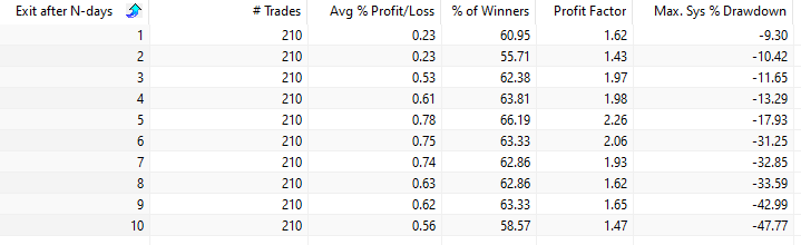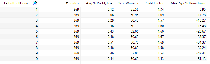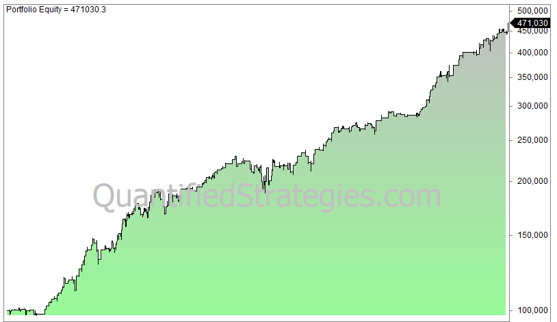 Performance gets better if we add an RSI filter: RSI(5) must be below 60: