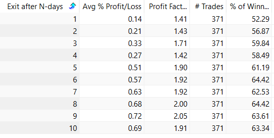 Below is the table if we hold for N days: