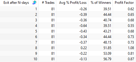 Trading performance if we exit after N-days since SPY’s inception in 1993: