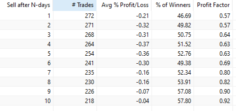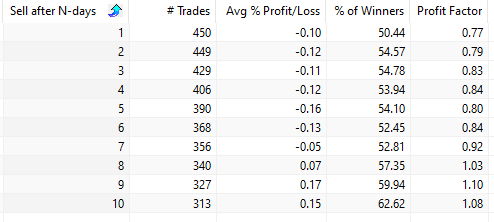 Below is the table if we hold for N days since SPY’s inception in 1993: