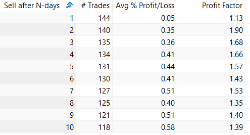 Below is the table if we hold for N days since GLD’s inception: