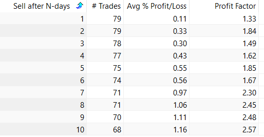 Trading performance if exit after N-days (100 000 and compounding since inception):