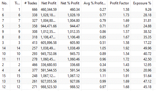 This is one of the simplest possible exits there is. You simply exit after a certain period of time, be it minutes, days, months, or n bars. A time-based exit might be simple, but it’s still one of the most efficient exits you can use. We regard a time exit as a very underrated exit parameter.