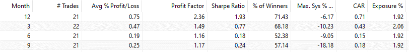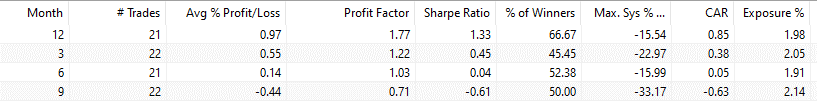 We backtest the contract the same way as we did with DAX 40 and get the following result for all settlement months: