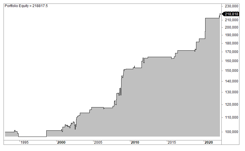 The equity curve looks like this: