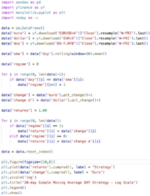 - When DXY is lower than it’s 30-week simple moving average, we buy spot euro.