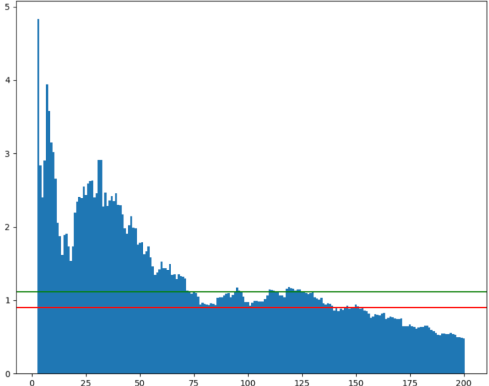 As you can see, the strategy performs well when the values are lower than 50. However, its peak performance is achieved when the values are on the short side – less than 10.