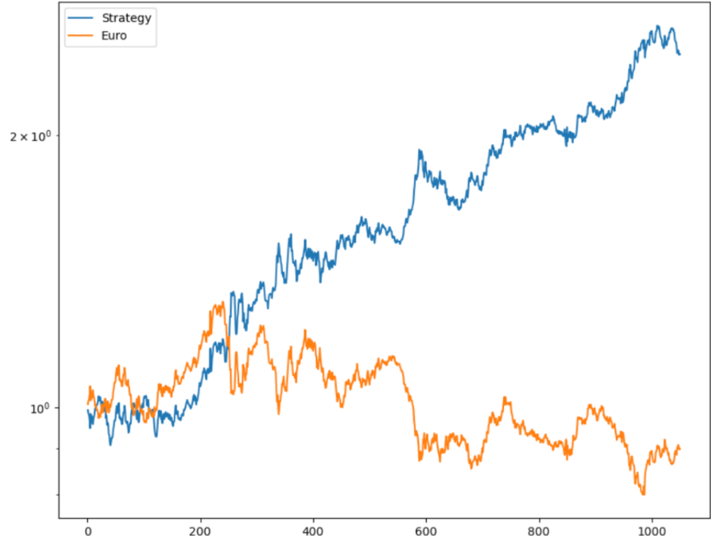 The backtest is performed vis DXY – the USD index, but we trade EUR and USD.