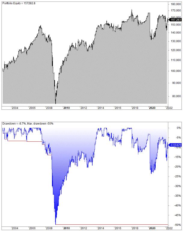 If we backtest the 15-day moving average, the equity curve looks like this from 2003: