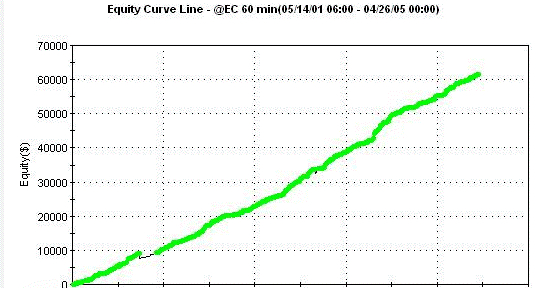 For example, a strategy might produce an average gain of 0.66%, which you find very good, but the equity curve might look like this: