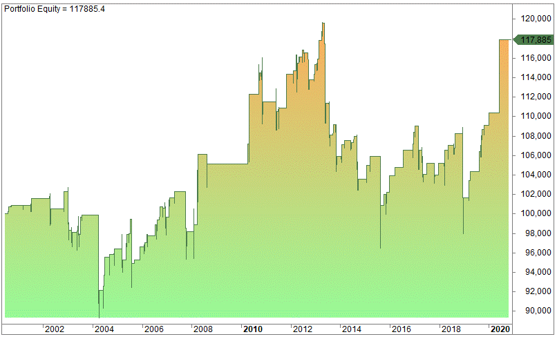 Instead, we prefer to focus on the robustness of the strategies by using some simple tests, such as a visual look at the equity curve and the mathematical profit factor. However, they are somewhat correlated. The best test of robustness is the out of sample test: