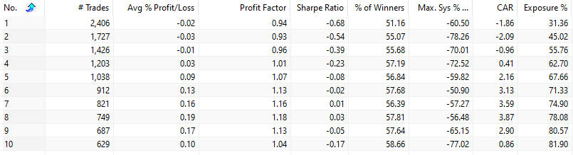 As you can see, the QS Exit makes the journey smoother with less drawdowns. Our experience is that max drawdown is an essential metric for most traders, because most abandon a strategy after a few months of losses – exactly when a strategy might turnaround.