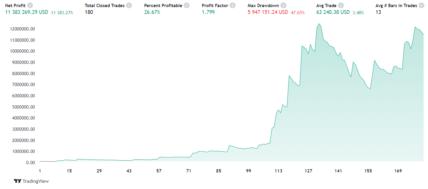 All these backtesting examples seem to suggest the same thing: trading cryptocurrencies with a larger market cap tends to yield better long-term results, irrespective of the specific strategy used.